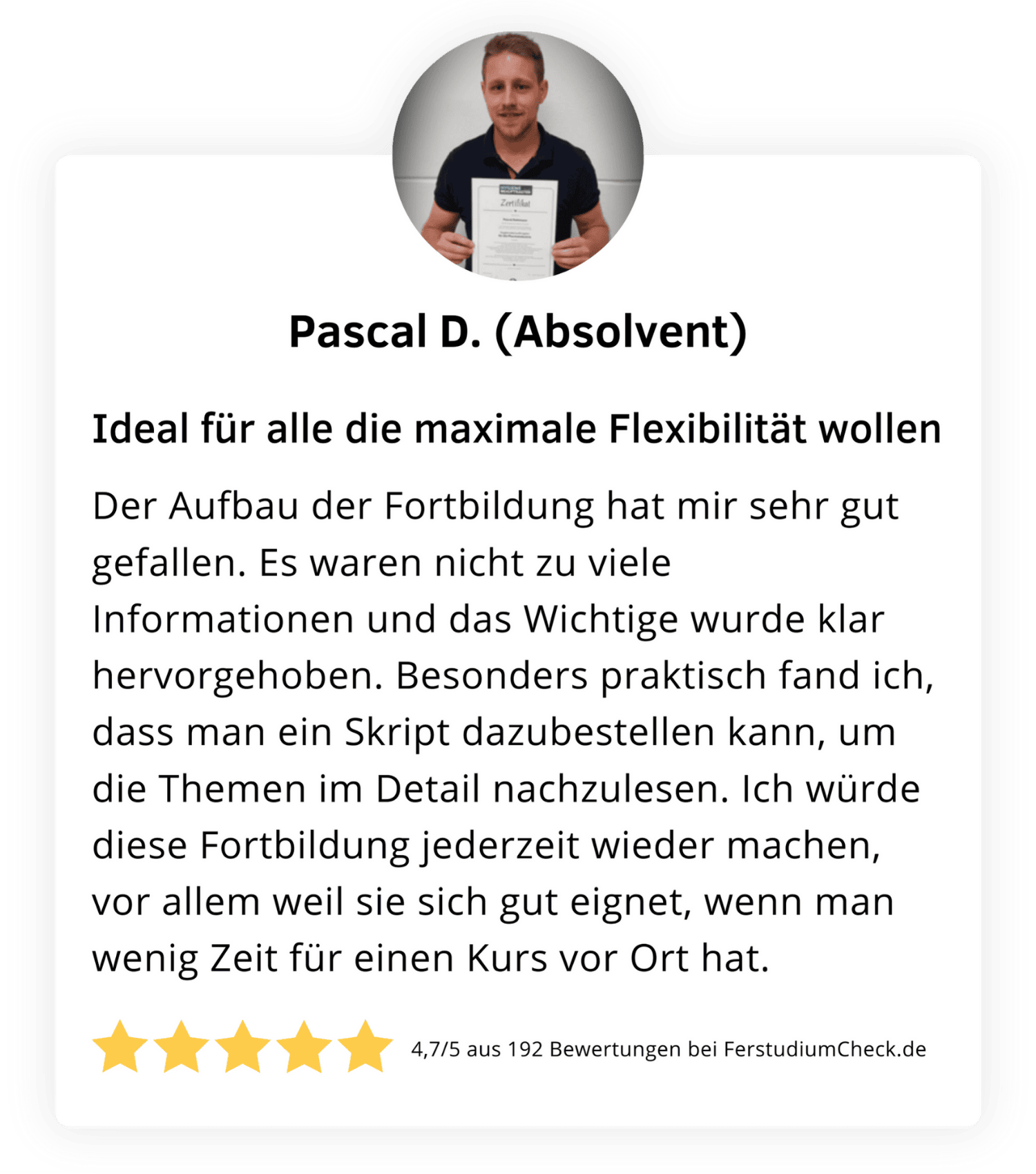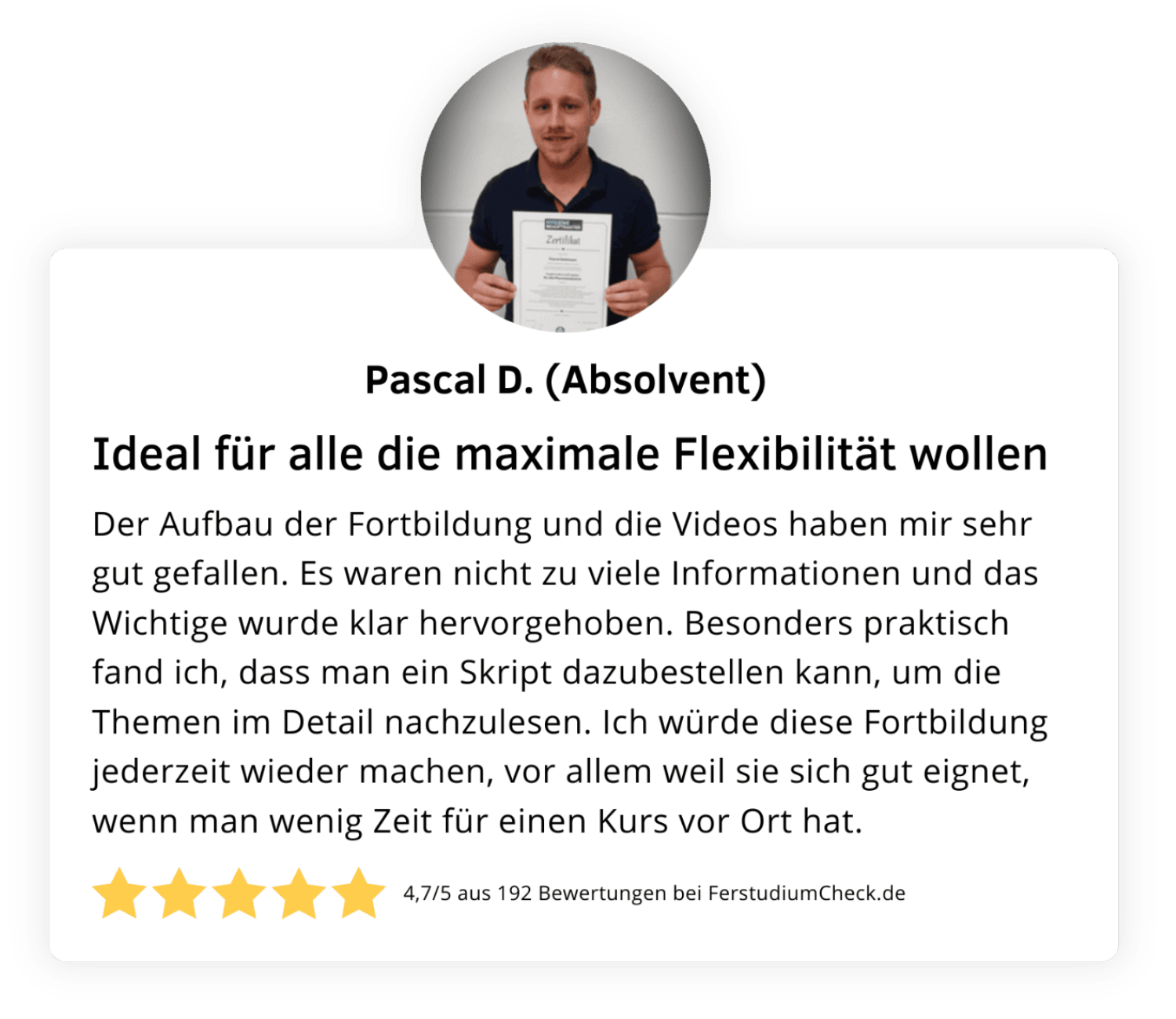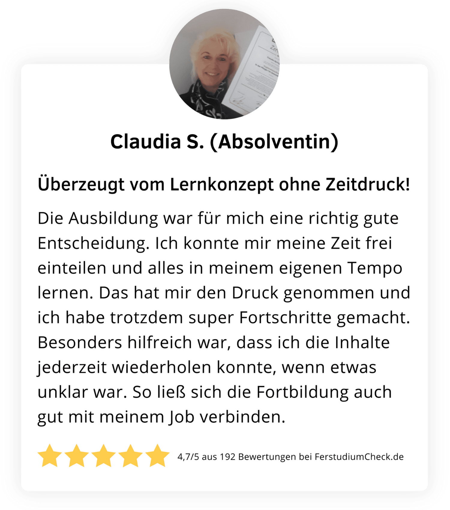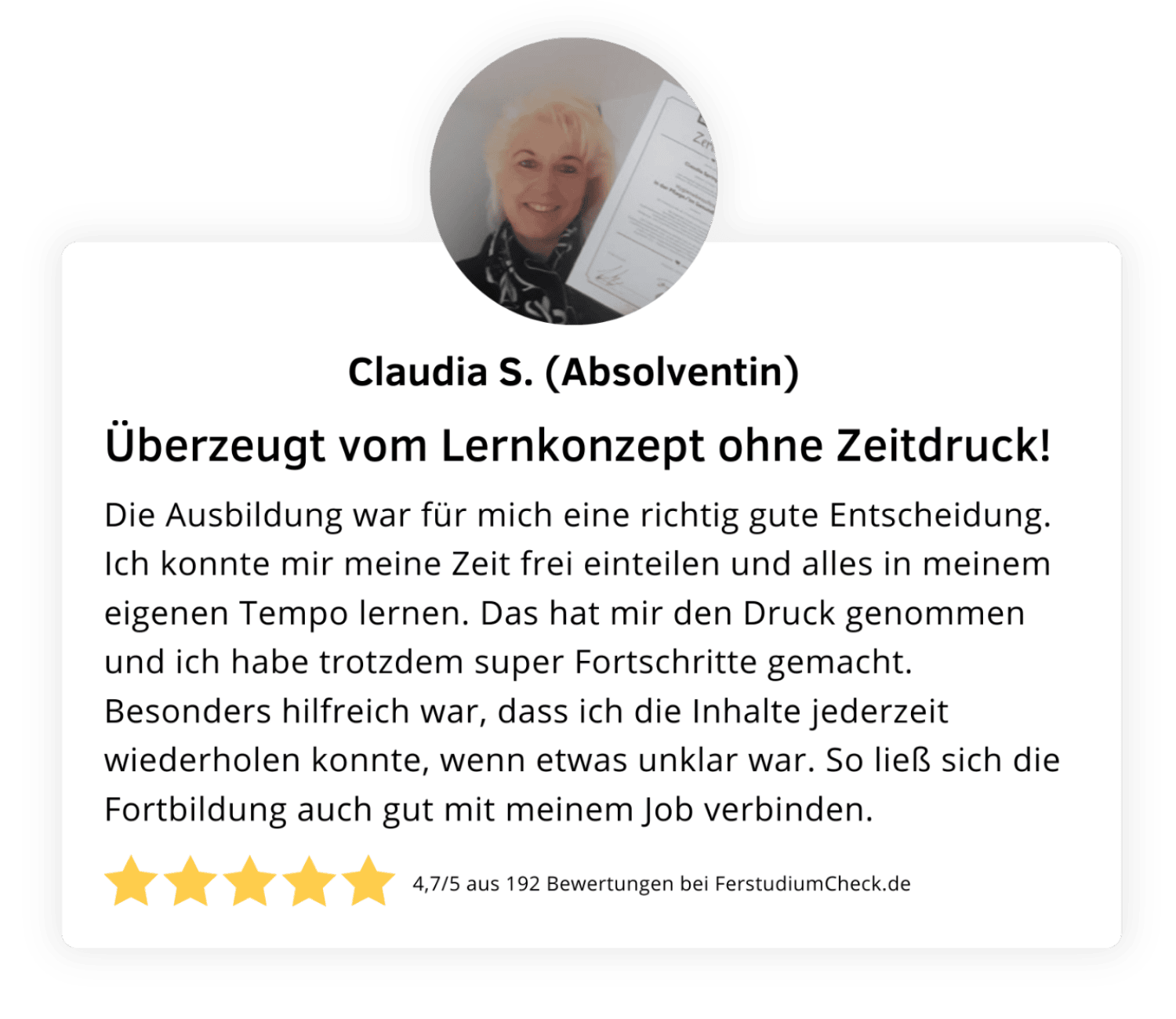 Gleichzeitig ist die Qualität umfassend gesichert. Die Akademie ist von der Staatlichen Zentralstelle für Fernunterricht (ZFU) geprüft und zugelassen, was eine pädagogisch sinnvolle Struktur garantiert. Hinzu kommt die AZAV-Zertifizierung, die es ermöglicht, die Ausbildung mit einem Bildungsgutschein vollständig fördern zu lassen. Ergänzt wird dies durch die TÜV-Süd ISO-9001-Zertifizierung des Trägers – ein klares Signal für Verlässlichkeit und Qualität.